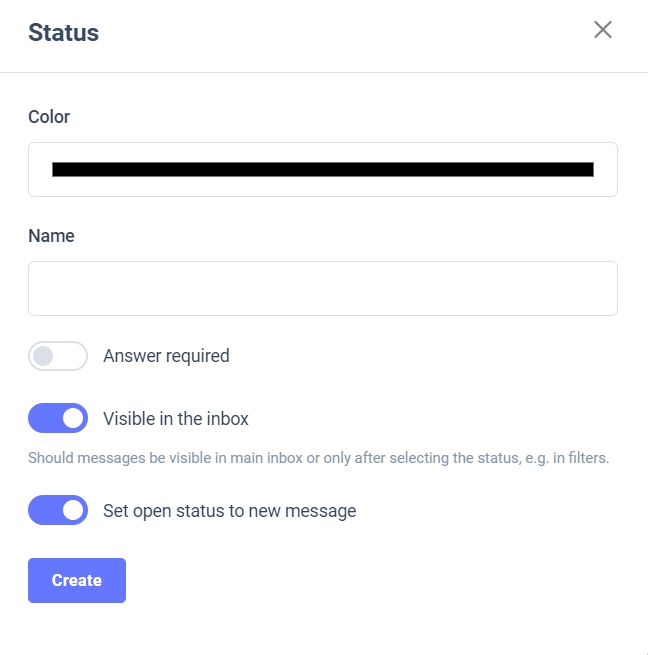 Visible in an inbox – Should messages be visible in the main inbox, or only after selecting the status, e.g. in filters.