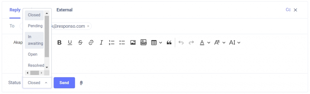 Set open status to a new message – when a new message arrives from the client, the status will automatically change to Open.