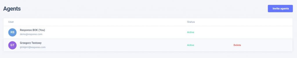 You can delete an agent's profile at any time. To do this, click Delete next to the appropriate agent in the agents list, and then confirm that you want the profile to be deleted. Please note that this action is irreversible.