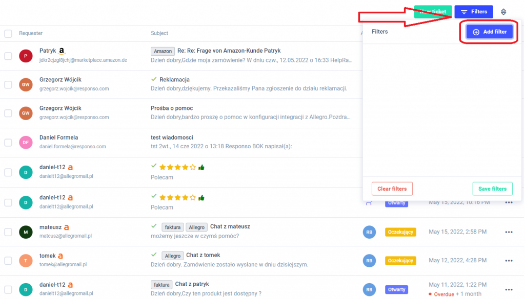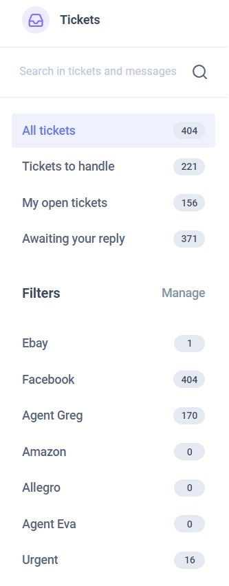 Filters are very important to find the desirable messages easily and quickly. In the Responso system, we have added the ability to donate and save your filters. Quick access is possible through the list of your filters in the left navigation menu in the Inbox: