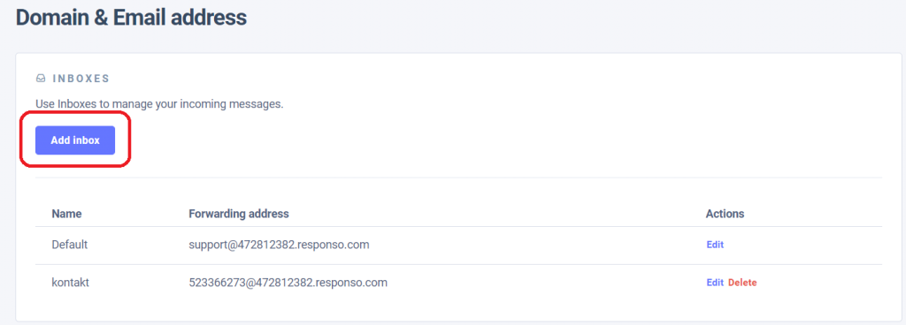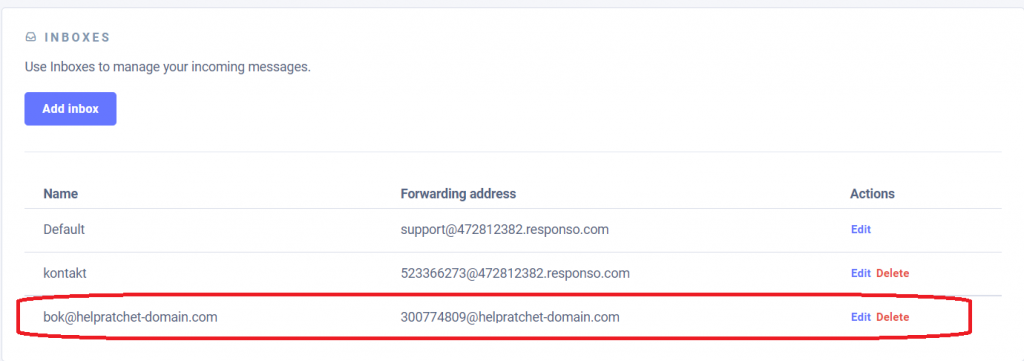 ATTENTION! If we want to redirect more than one email address to the system Responso.com must create the correct amount of inbox. We will create separate redirect addresses for better management in the future.