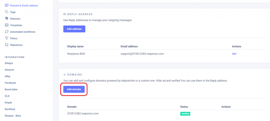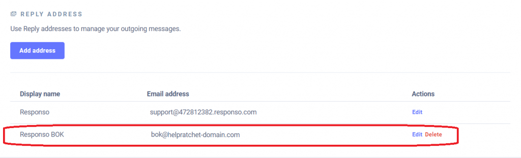 To add a new reply address, you have to go to the “Reply Address” block and then click the “Add address” button.
