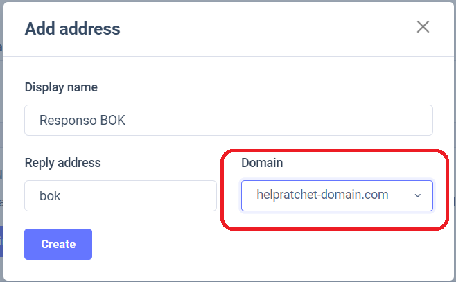 Once opened, you need to select a domain from the drop-down list. In the Reply address field, you have to enter the name of the email account (what comes before @), e.g. contact. In the name field, you need to enter the name that will be displayed to the potential recipient.