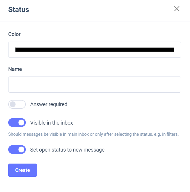 Visible dans la boîte de réception – détermine si les messages avec ce statut sont visibles dans la boîte de réception principale ou uniquement après la sélection du statut (par exemple via des filtres).