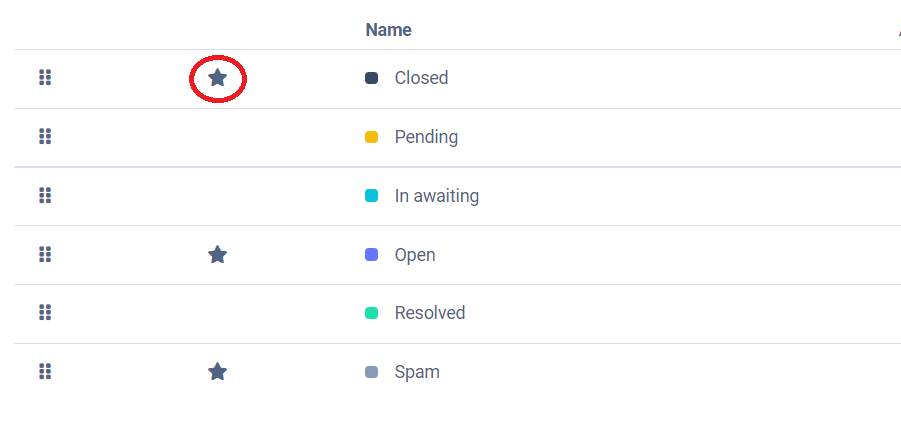 La configuration des statuts permet également de modifier leur ordre. Cela vous permet de définir le statut par défaut utilisé lors de l’envoi d’un message.