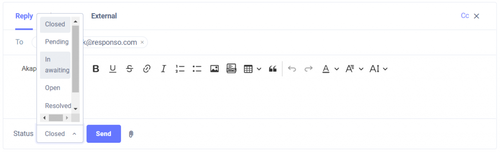 Définir le statut ouvert pour les nouveaux messages – lorsqu’un nouveau message arrive de la part du client, le statut est automatiquement défini sur Ouvert.