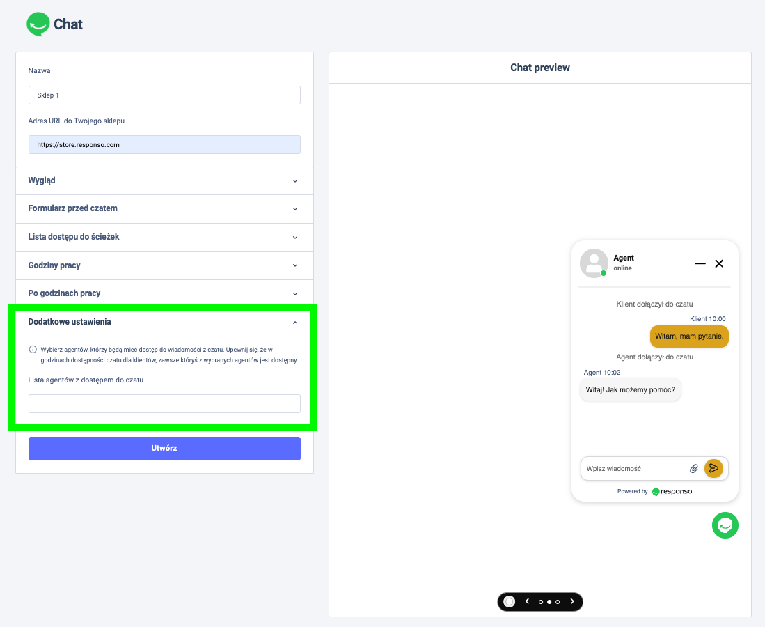 W tej sekcji możesz wskazać agentów, którzy będą mieć dostęp do czatu.