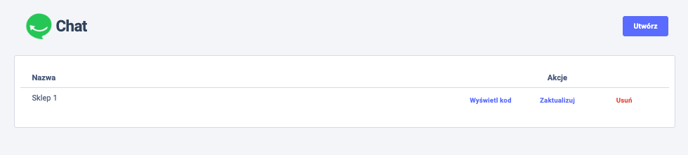 Twój nowoutworzony czat pojawił się na liście w zakładce Chat. Aby osadzić go na stronie sklepu, kliknij Wyświetl kod.