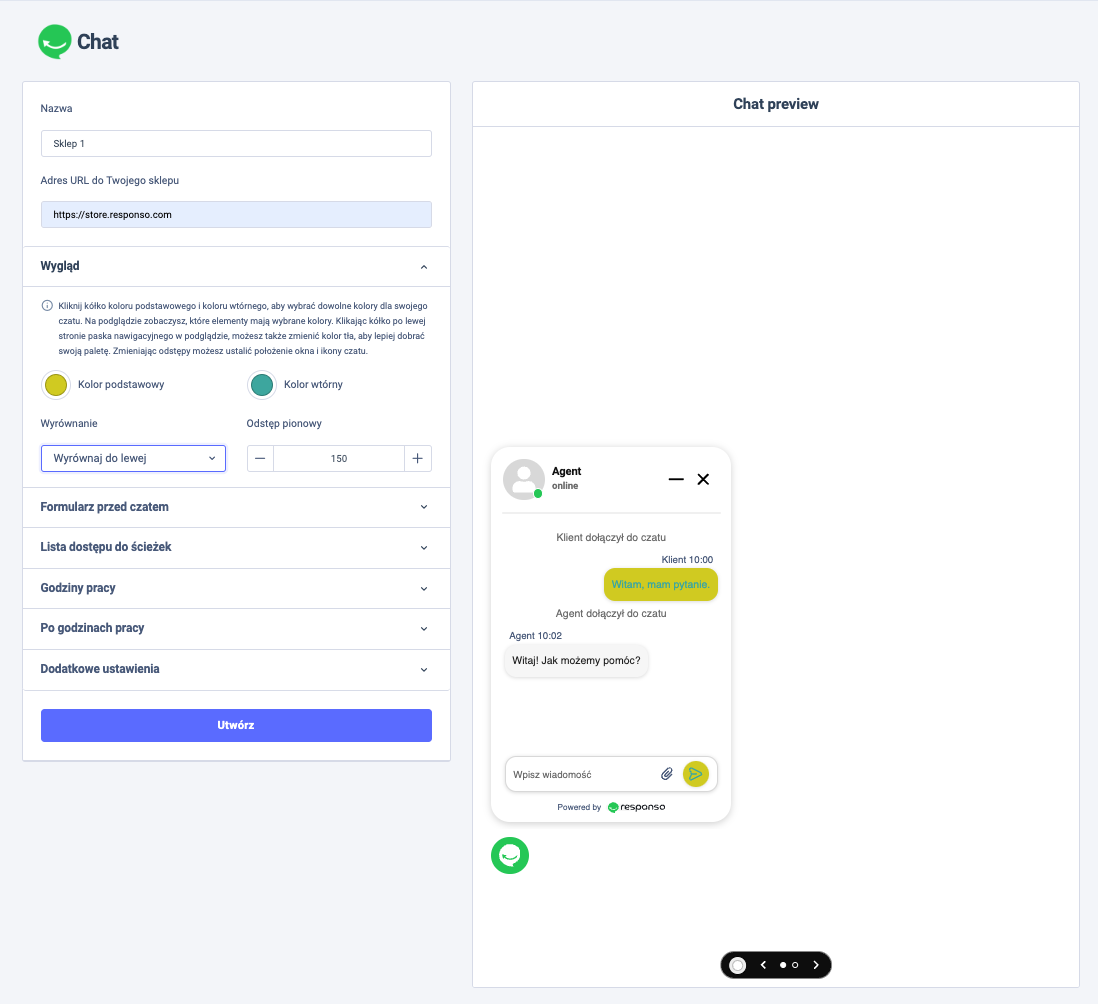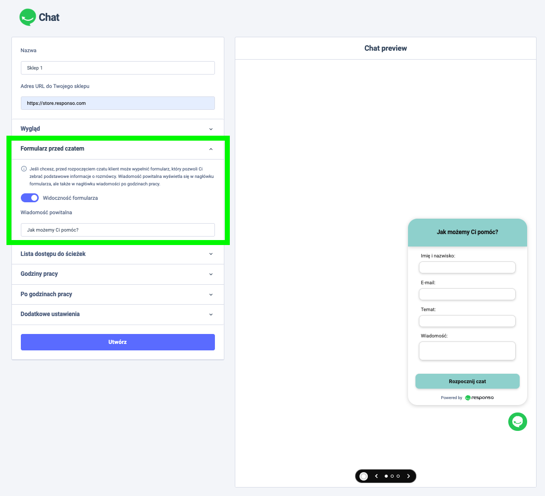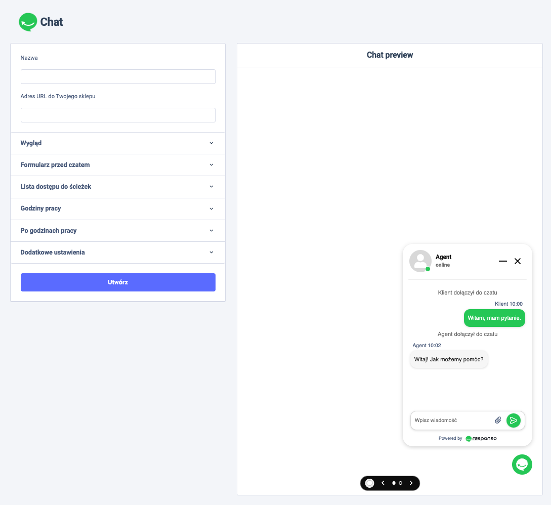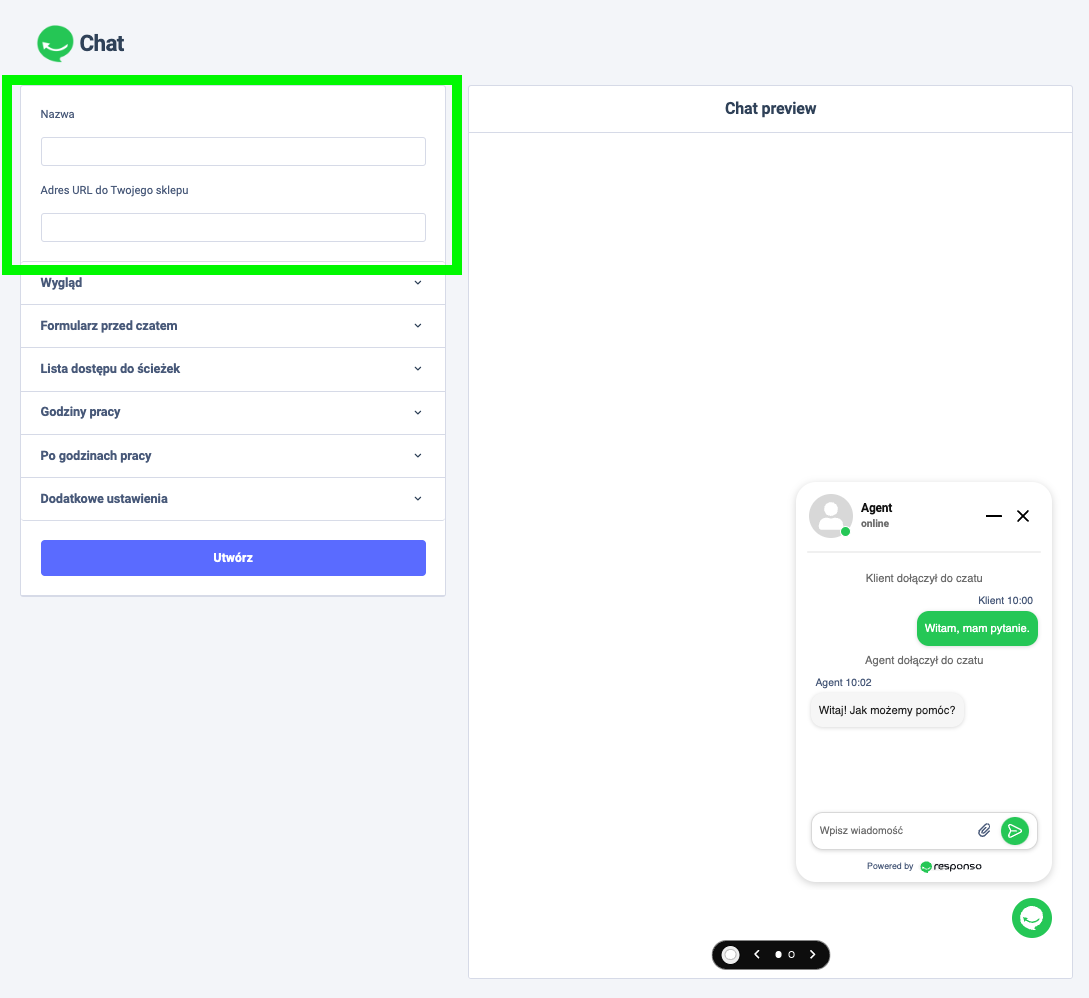 Nazwa – to będzie nazwa twojego chatu wyświetlana na liście utworzonych chatów w Responso.