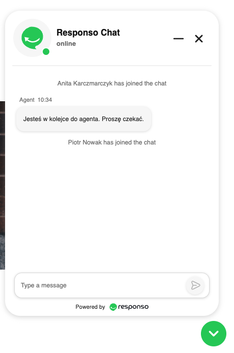 Po rozpoczęciu chatu klient otrzymuje informację, że oczekuje na agenta.