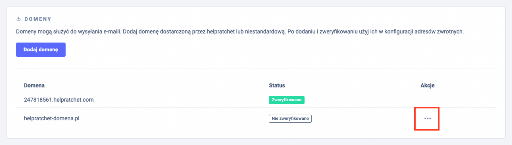 Dodanie domeny odbywa się poprzez kliknięcie przycisku na samym dole.