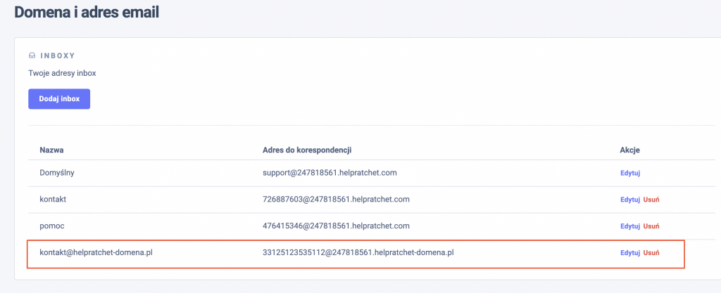 UWAGA! Jeżeli chcemy przekierować więcej niż jeden adres email do systemu Responso.com należy utworzyć odpowiednią ilość inbox. Dzięki czemu utworzymy oddzielne adresy do przekierowań,co pozwoli na lepsze zarządzanie w przyszłości.