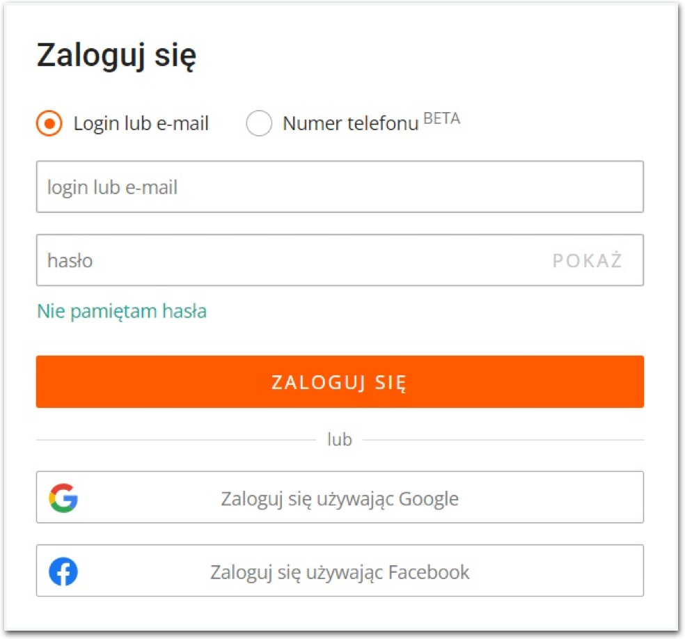 Po stronie Allegro, należy wprowadzić swoje dane do logowania: