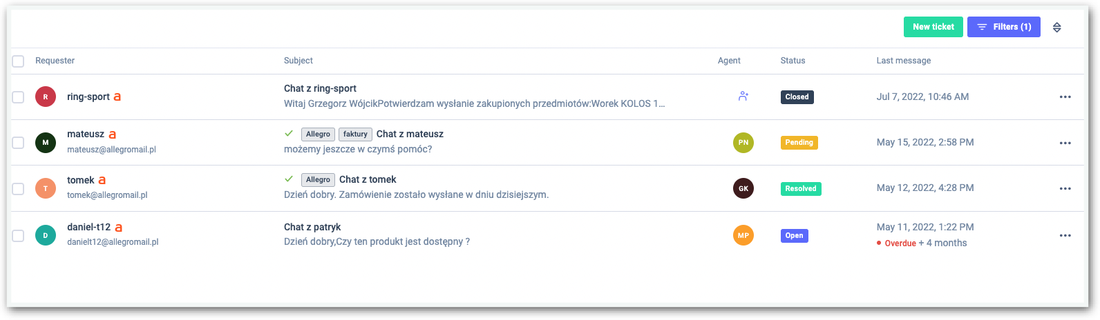 Zmiany wdrożone przez Allegro w październiku 2025 spowodowały rozdzielenie ticketów dyskusji na dwa rodzaje: dyskusje i reklamacje. To, jakim typem będzie dany ticket, zależy od powodu zgłoszenia, jaki wskaże kupujący.