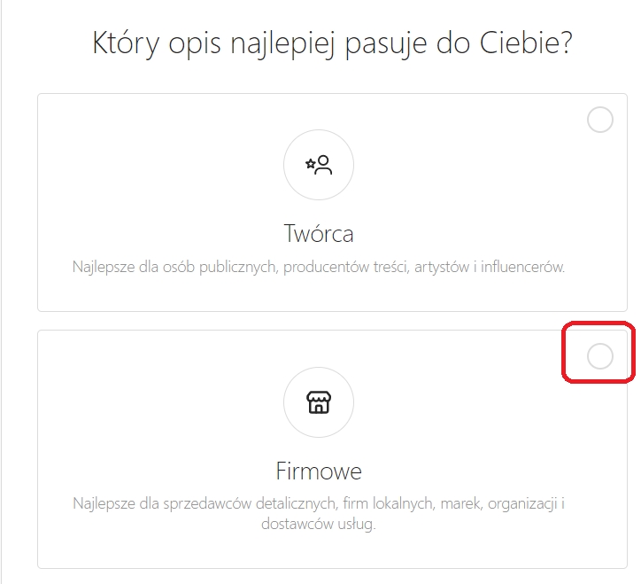 W następnym etapie zaznacz konto firmowe: