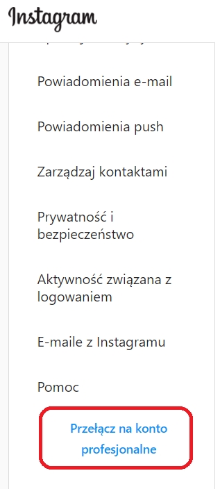 Przed dodaniem konta, upewnij się, że Twoje konto jest kontem profesjonalnym i firmowym.