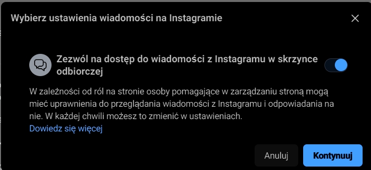 Na samym końcu zezwól na dostęp do wiadomości z Instagramu w skrzynce odbiorczej: